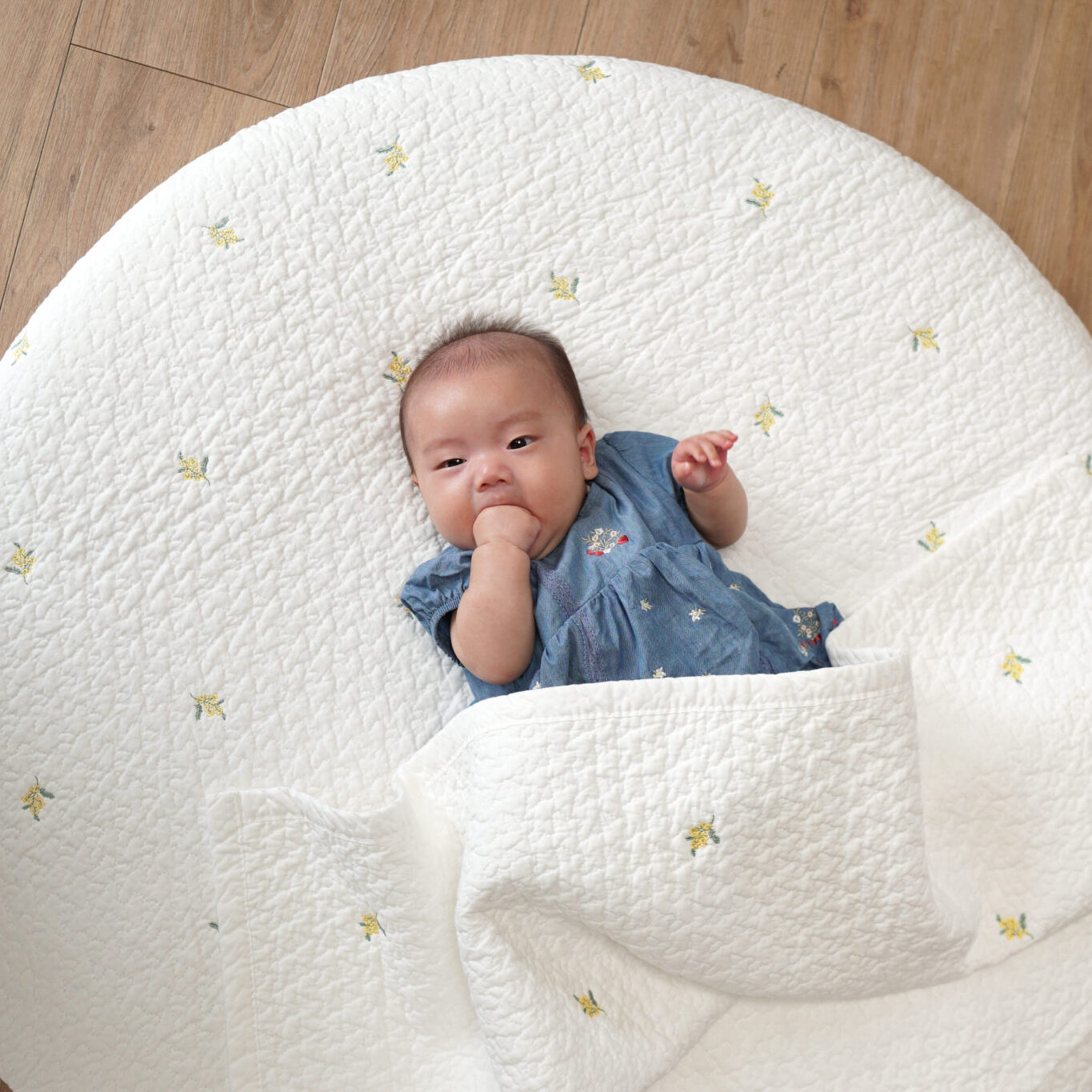 天然素材として人気のコットン(綿)生地100%を使用したイブルラウンドベビーマット。