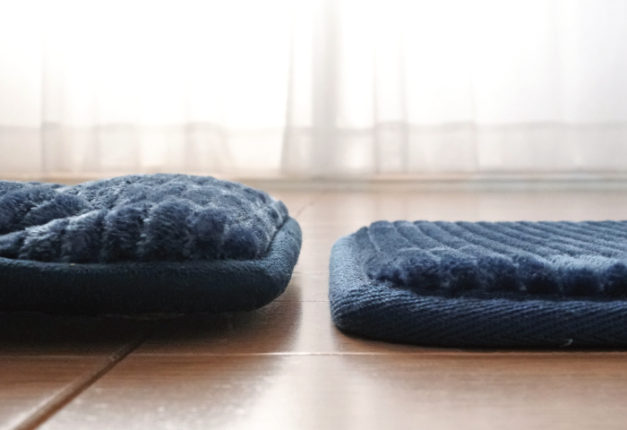裏面は滑り止めつきでフローリングの上でもズレにくいです。