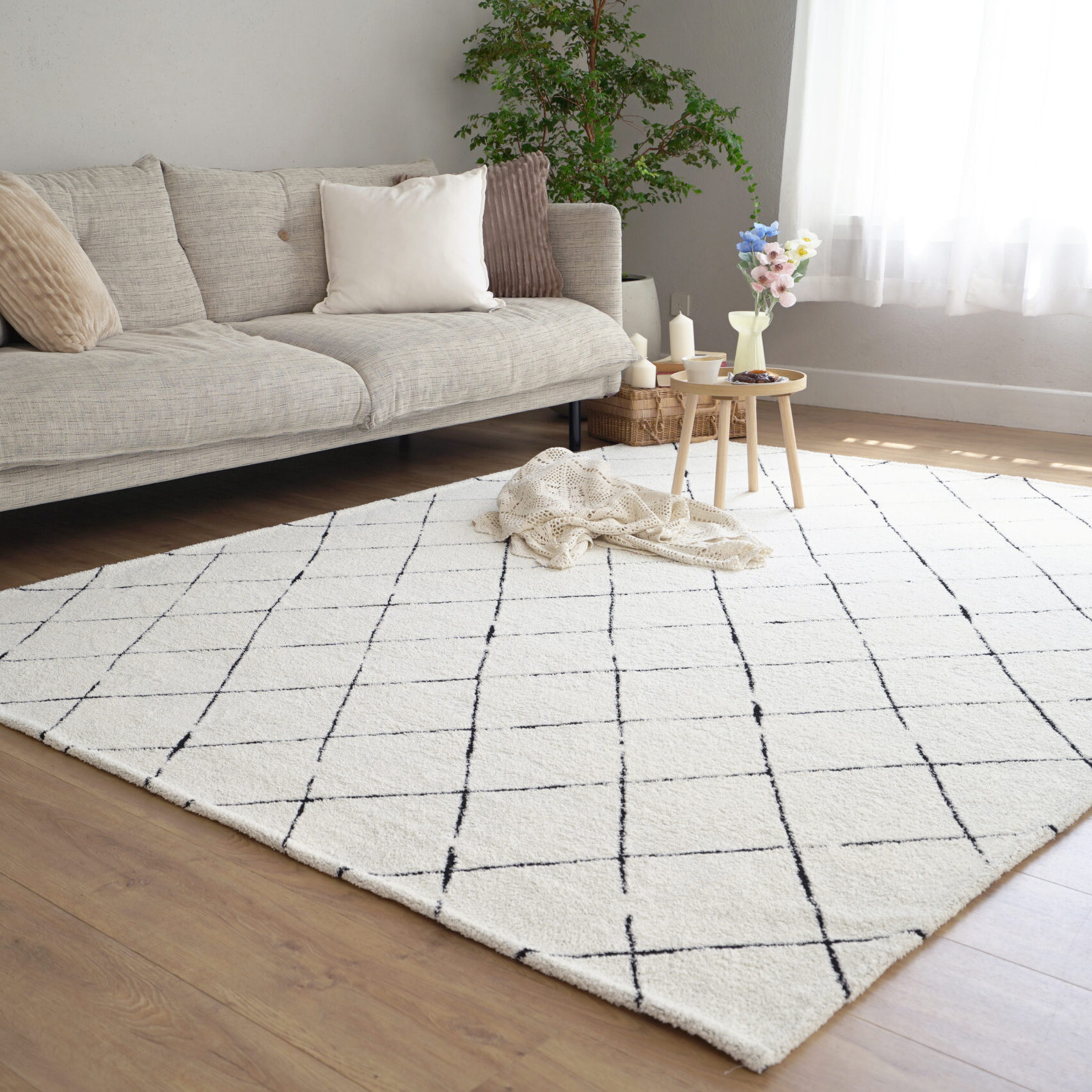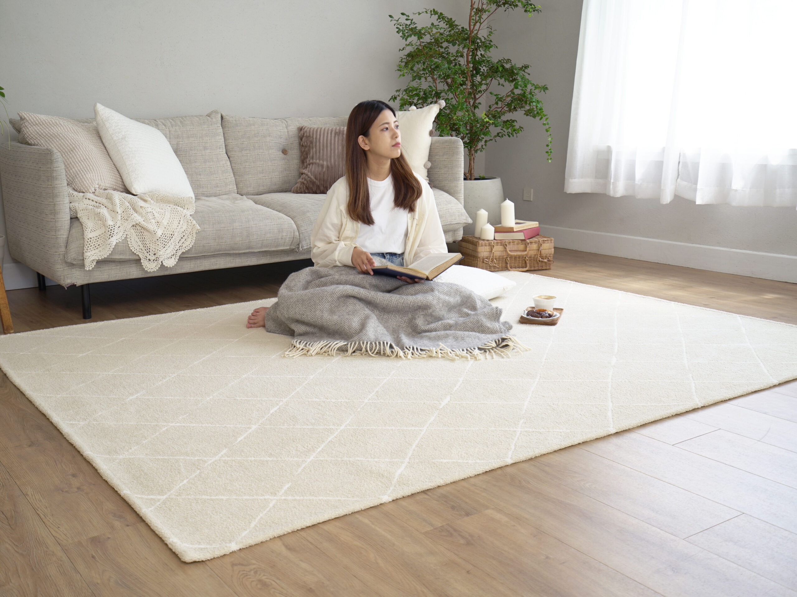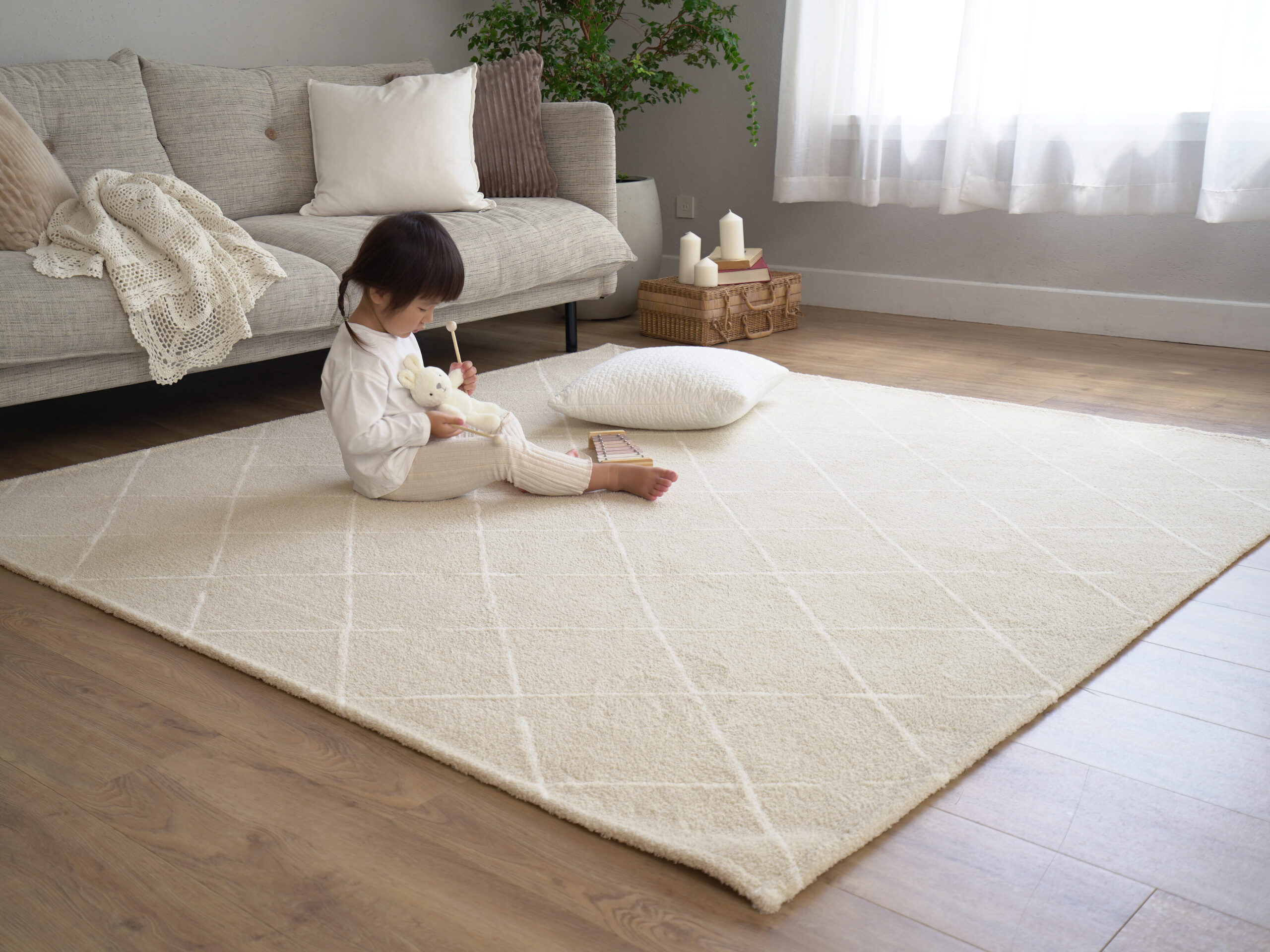 お部屋の雰囲気を一気にアップデートしてくれるベニワレンデザインのラグが入荷しました。ナチュラルなのにおしゃれで、どんな空間にもスッと馴染むデザイン。手洗いOK、お子様も安心の低ホルムアルデヒド、滑り止め付き、床暖房・ホットカーペットOKなど、機能面もバッチリ。おしゃれさと使いやすさ、どちらも叶える1枚です。