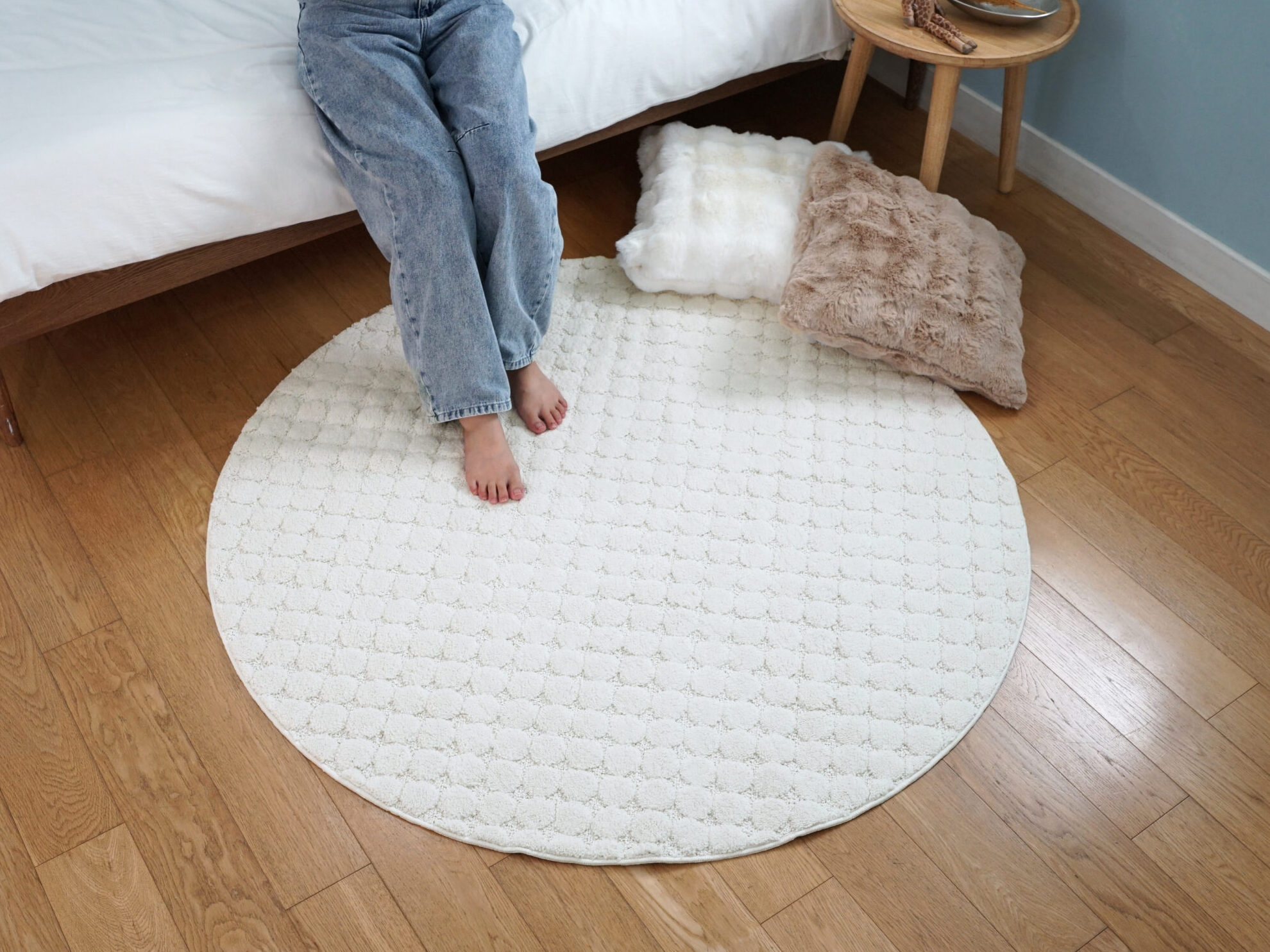 踏むたびにふわっと感じる心地よいクッション性。やわらかなパイルとポコポコとした足触りがやみつきになります。